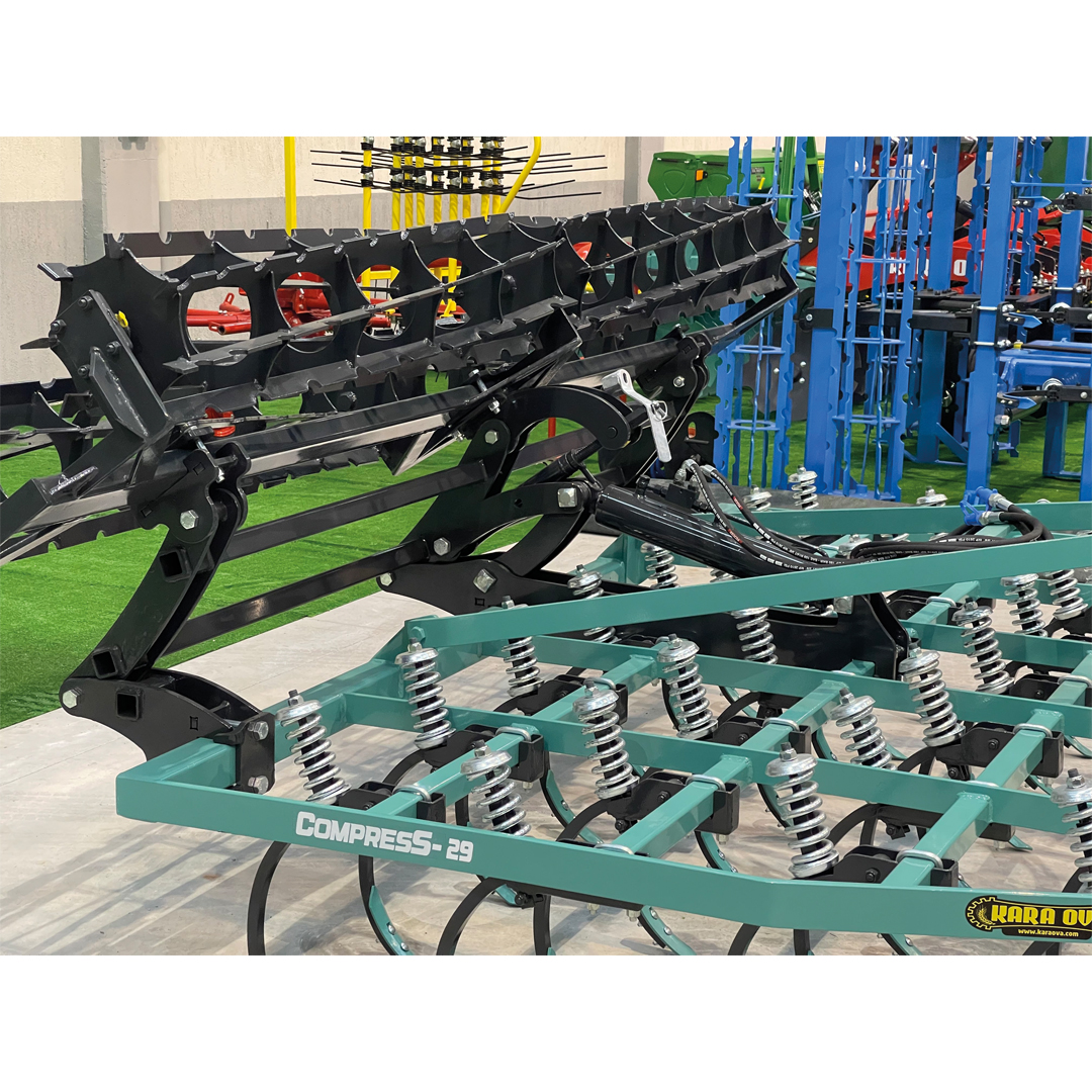 21,23,25,27,29,31,33,35 ayaklı düz tip ve 35,40,45,50 ayaklı katlanır tip olmak üzere çift sıralı döner tırmık kombinasyonu olarak üretilmektedir. Zamandan ve yakıttan tasarruf sağlar. Katlanabilme özelliği ile umumi yollarda nakliye kolaylığı sağlar, toprağı yırtarak kabartır ve havalanmasını sağlar. Kültivatörün sürüm yaptığı toprağı, döner tırmık sıkıştırarak toprak yüzeyini düzeltir. İyi bir tohum yatağı hazırlar ve tohum zayiatını en az seviyeye indirir. Merdane kombinasyonu taşlı araziler için tavsiye edilmez. Teknik Özellikler KODU AÇIKLAMA İŞ GENİŞLİĞİ (CM) BACAK ARASI MESAFE (CM) AĞIRLIK (KG) GEREKLİ GÜÇ (HP) KO6-21 BASKI YAYLI TIRMIK 21 AYAKLI 210 10-11 285 50-60 KO6-23 BASKI YAYLI TIRMIK 23 AYAKLI 230 10-11 350 55-65 KO6-25 BASKI YAYLI TIRMIK 25 AYAKLI 250 10-11 380 60-70 KO6-27 BASKI YAYLI TIRMIK 27 AYAKLI 270 10-11 405 65-75 KO6-29 BASKI YAYLI TIRMIK 29 AYAKLI 290 10-11 440 70-80 KO6-31 BASKI YAYLI TIRMIK 31 AYAKLI 310 10-11 490 80-90 KO6-33 BASKI YAYLI TIRMIK 33 AYAKLI 330 10-11 530 85-95 KO6-35 BASKI YAYLI TIRMIK 35 AYAKLI 350 10-11 580 90-100 KODU AÇIKLAMA MERDANE TİPİ İŞ GENİŞLİĞİ (CM) BACAK ARASI MESAFE (CM) AĞIRLIK (KG) GEREKLİ GÜÇ (HP) KO40-21 BASKI YAYLI TIRMIK 21 AYAKLI ÇİFTLİ KAFES MERDANE 210 10-11 640 50-60 KO40-23 BASKI YAYLI TIRMIK 23 AYAKLI 230 10-11 700 55-65 KO40-25 BASKI YAYLI TIRMIK 25 AYAKLI 250 10-11 740 60-70 KO40-27 BASKI YAYLI TIRMIK 27 AYAKLI 270 10-11 775 65-75 KO40-29 BASKI YAYLI TIRMIK 29 AYAKLI 290 10-11 840 70-80 KO40-31 BASKI YAYLI TIRMIK 31 AYAKLI 310 10-11 900 80-90 KO40-33 BASKI YAYLI TIRMIK 33 AYAKLI 330 10-11 975 85-95 KO40-35 BASKI YAYLI TIRMIK 35 AYAKLI 350 10-11 1050 90-100 PİSTONLU MERDANE KOMBİNASYONU OLURSA +100 KG EKLENİR.